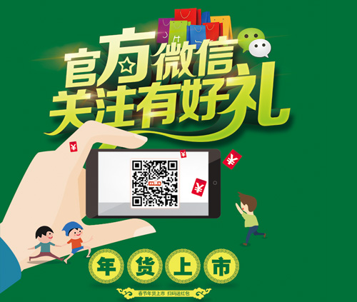 春节年货已上架,关注微信公众号有惊喜哦!关注微信公众号,发送“恭喜发财”赢取现金红包哦!